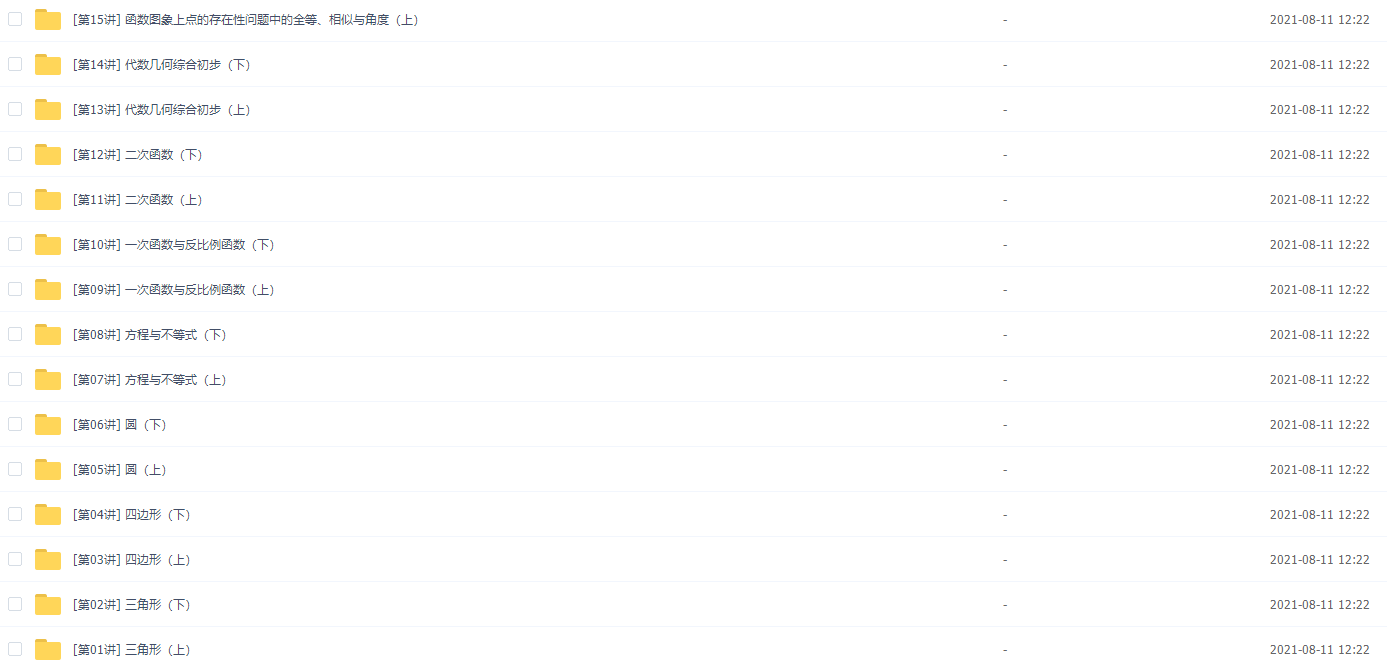徐德直 初三数学秋季目标班目录:├─第10讲 圆中的相似与直角三角形.flv├─...