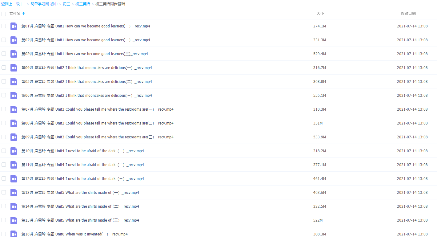 对于初三学生来说,英语学科的学习不仅增加了词汇量、知识量,还要求同学们在熟练掌握语法的基础上,提高实际运用英语交际。此课件来自简单学习网初三麻雪玲英语同步基础课程,先背单词,再学知识点,再做题。基本只要按照这三个步骤不间断的学习,就能提高承接。