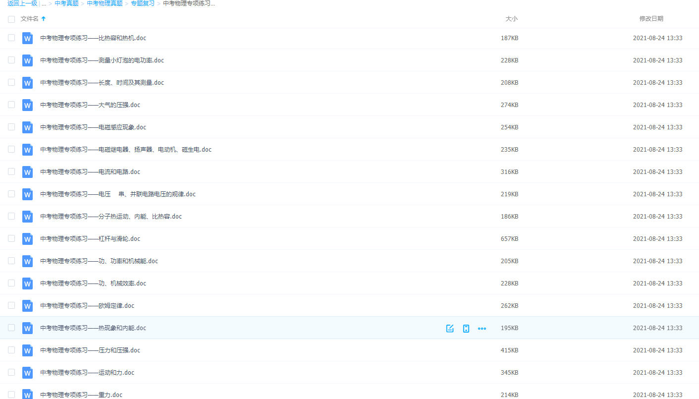 中考物理专项练习(17份打包)电磁继电器扬声器等含答案!物理的专项训练很多,又不懂的知识点一定要针对训练哦!