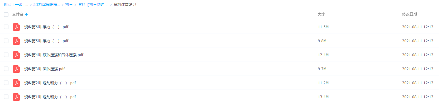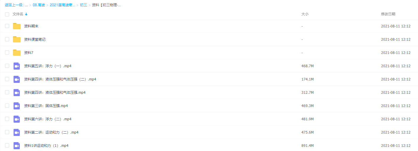 此课件来自高途课堂,2021高途课堂初三物理寒假郭志强视频课程,包含视频课程和讲义资料 。此课件主要知识点包括:运动和力、液体压强和气体压强、固体压强等视频内容。
