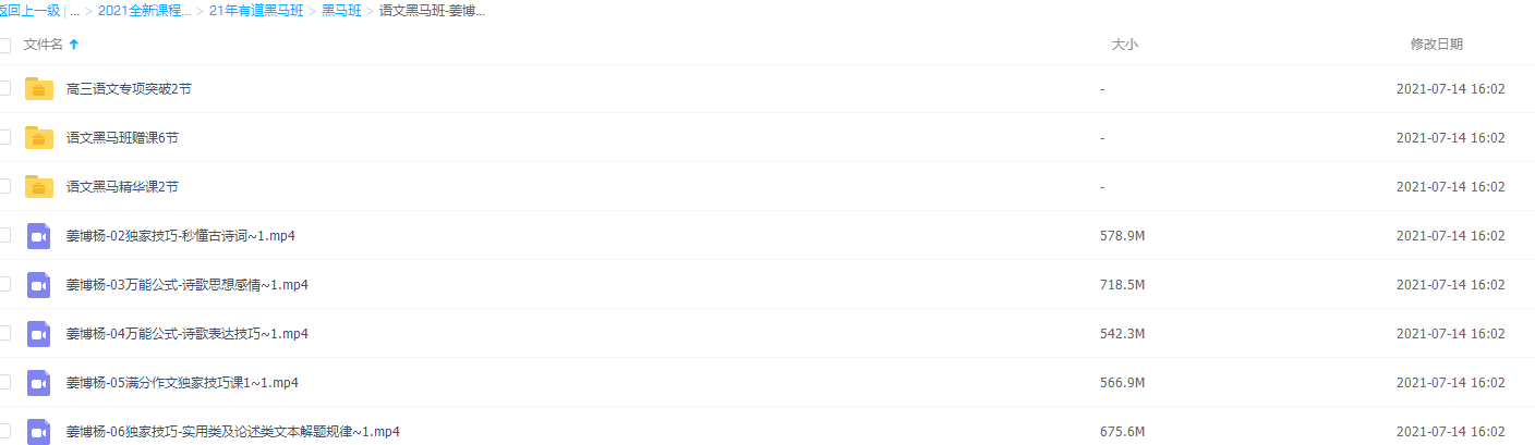 此课件来自有道精品课,2021年高考语文姜博杨黑马班全套视频。主讲姜博杨老师让语文教学逻辑化,太有逻辑思维了。此课件主要知识点包括:万能公式诗歌表达技巧、满分作文独家技巧、独家技巧实用类及论达美文本解题规律、万能公式数文阅读答题规律、满分作文独家技巧课、文言句式翻译题、高频病句、成语解析等视频。