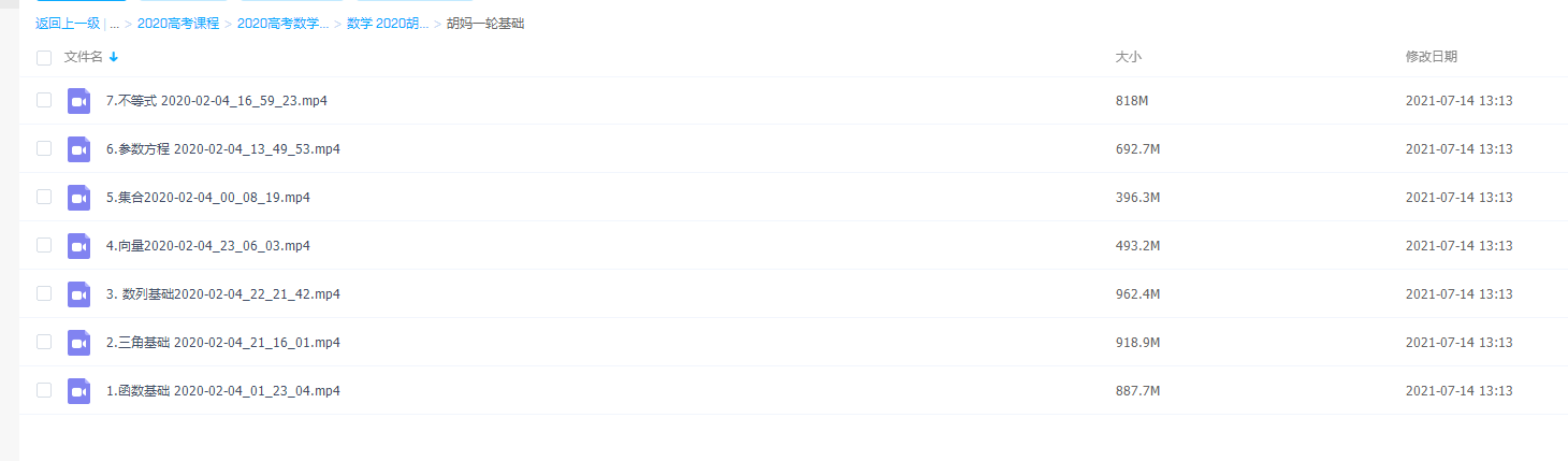 数学2020胡金利胡妈一轮基础复习网课公开课提升技巧视频课程