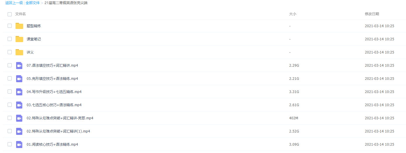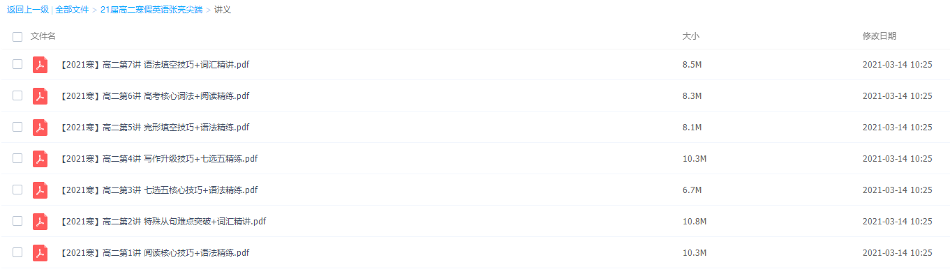 作业帮2021巧英语张亮高二尖端班视频课程附加讲义