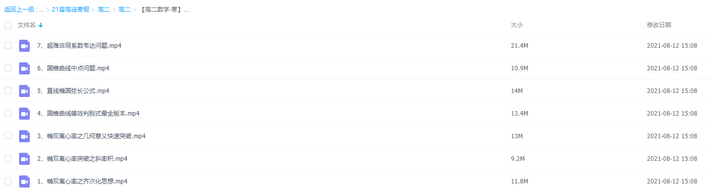 课程来自于高途课堂,2021年寒假高二数学付力视频课,课程知识点包括椭双离心率、圆锥曲线等效判别式、直线椭圆弦长公式、圆锥曲线中点问题、超难非同系数韦达问题等。付老师的讲课风格,语速流畅,表达形式简洁幽默,通俗易懂,生动有趣,让人记忆深刻,算题方法很实用,真的是应用方法灵活极了,再难的题也会迎刃而解,让人的思路豁然开朗,对数学增加了兴趣。