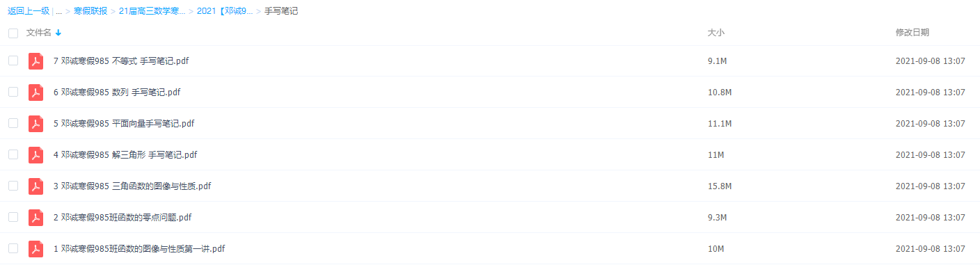 1│├─21届高三数学寒假邓诚985 [文件夹大小:19.67 GB 子文件夹数...