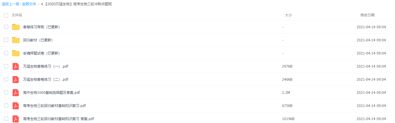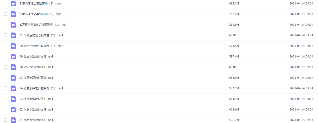 此课件来自有道精品课,万猛生物三轮冲刺点题班,包含视频课程和讲义资料 。主讲万猛老师注重对学生基础知识的训练和基本技能的培养,精讲多练,讲练结合,突出重点,突破难点。此课件主要知识点包括:细胞专题教材回归、代谢专题教材回归、考前演练之套题、变异专题教材回归等视频。