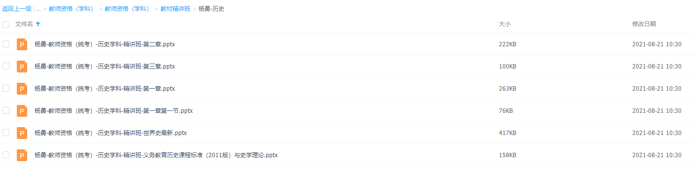 本课件是教师资格证考试杨勇老师的历史学习课程,包含了很多知识点讲义学习课件,可以根据自己的需求进行相关练习!