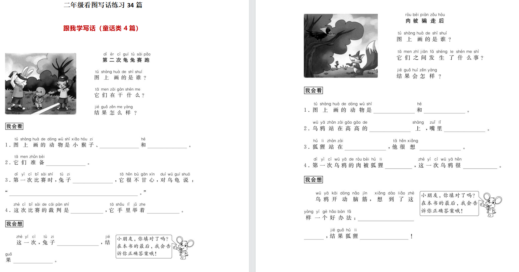 一年级语文看图写话练习33篇二年级语文看图写话练习34篇doxc、pdf两种格式 声明:本站资源来自会员发布以及互联网公开收集,不代表本站立场,仅限学习交流使用,请遵循相关法律法规,请在下载后24小时内删除。 如有侵权争议、不妥之处请联系本站删除处理! 请用户仔细辨认内容的真实性,避免上当受骗!