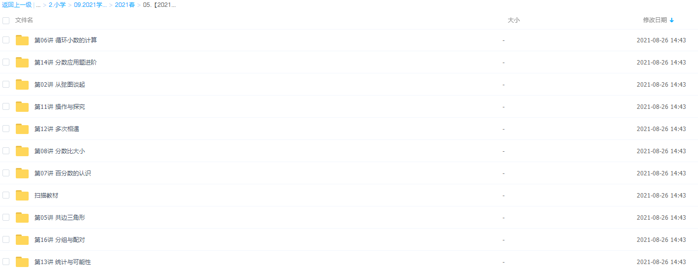 此内容来自于学而思网校,2021学而思李士超春五年级数学在线视频,包括课程视频回放以及课堂资料讲义。主要知识点包括分数巧算、从弦图谈起、水中浸物、剩余问题、共边三角形等。
