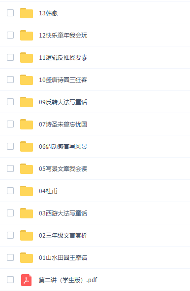 此课件来自学而思网校,薛春燕三年级语文培优2021年秋季班视频课程。此课件主要知识点包括:山水田园、杜甫、调动感官写风景、反转大法写童话、盛唐诗圈三狂客、逻辑反推找要素、快乐童年我会玩、韩愈等等视频课程。
