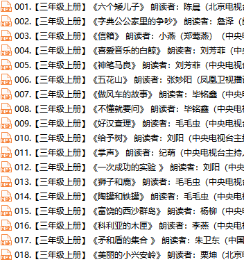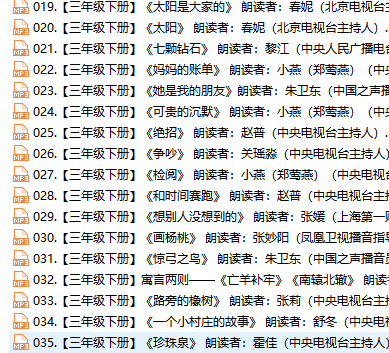 百位知名主持人小学语文课文公益同步朗读–3年级 声明:本站资源来自会员发布以及互联网公开收集,不代表本站立场,仅限学习交流使用,请遵循相关法律法规,请在下载后24小时内删除。 如有侵权争议、不妥之处请联系本站删除处理! 请用户仔细辨认内容的真实性,避免上当受骗!